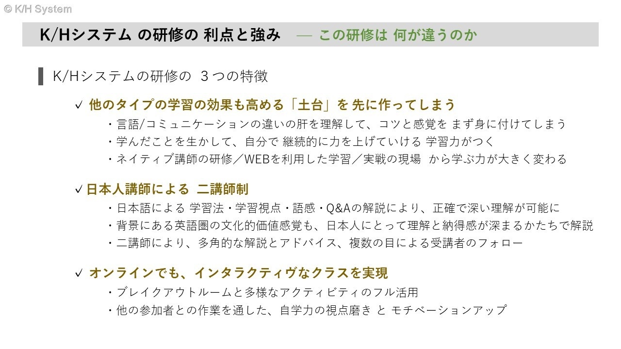 K/H System High Performance English Training Program